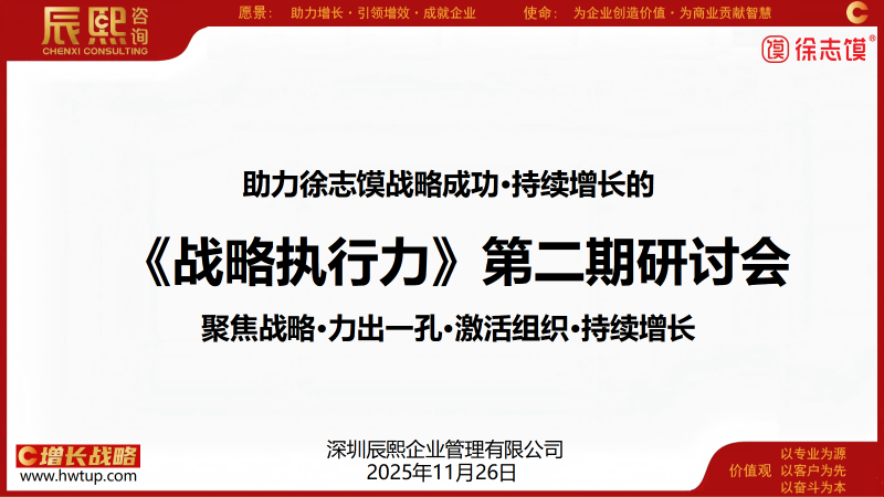 11月26日至27日,山东徐志馍餐饮管理有限公司与深圳辰熙企业管理咨询有限公司的 “助力徐志馍战略成功·持续增长的战略执行力·组织激活力项目” 第二期战略规划研讨会圆满落幕。