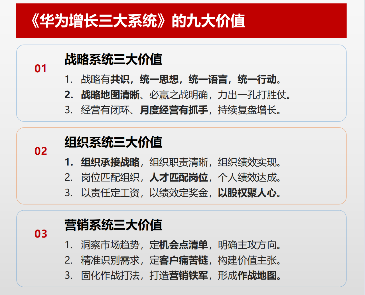 无论您是行业领跑者,还是正在寻求突破的成长型企业,洪老师的《华为增长三大系统》都可能是您下一个增长拐点的起点。