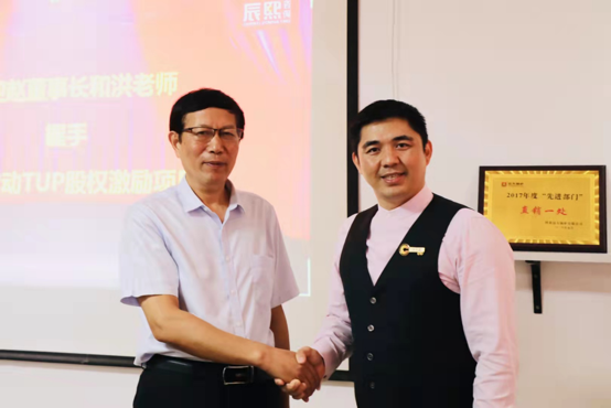 辰熙创始人,TUP首席顾问洪老师与赵董事长握手启动远大锅炉TUP动态股权激励陪跑落地项目。每一次握手都是承诺,辰熙团队助力远大锅炉实现国内与国际业务双增长战略!